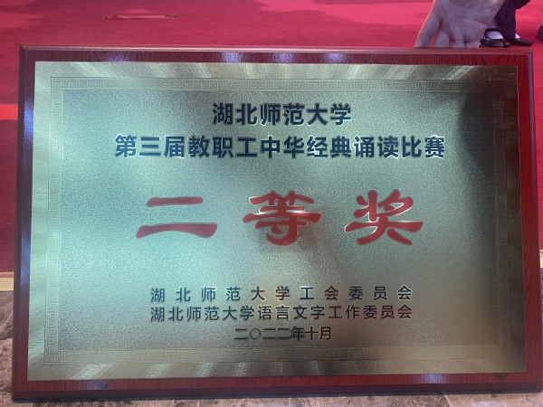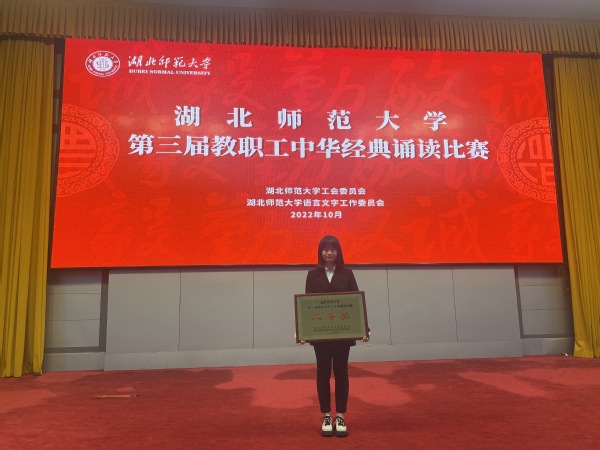 本网讯(通讯员 柯康敏)10月27日下午,湖北师范大学第三届教职工中华经典诵读在教育大楼学术报告厅举行,开云online(中国)人文学部丁书嫚老师朗诵的作品《读中国》荣获二等奖。