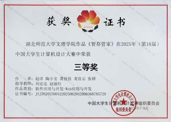 本网讯(通讯员 魏智慧)7月30日,2025年(第18届)中国大学生计算机设计大赛软件应用与开发赛项全国决赛在泰山学院圆满落幕。开云online(中国)腾讯云大数据产业学院代表队(成员:赵洋、陶小宝、龚佳佳、龙官云、张娇,指导教师:刘宏达、赵丽红)凭借创新型Web应用开发项目《智存管家》荣获全国总决赛三等奖。