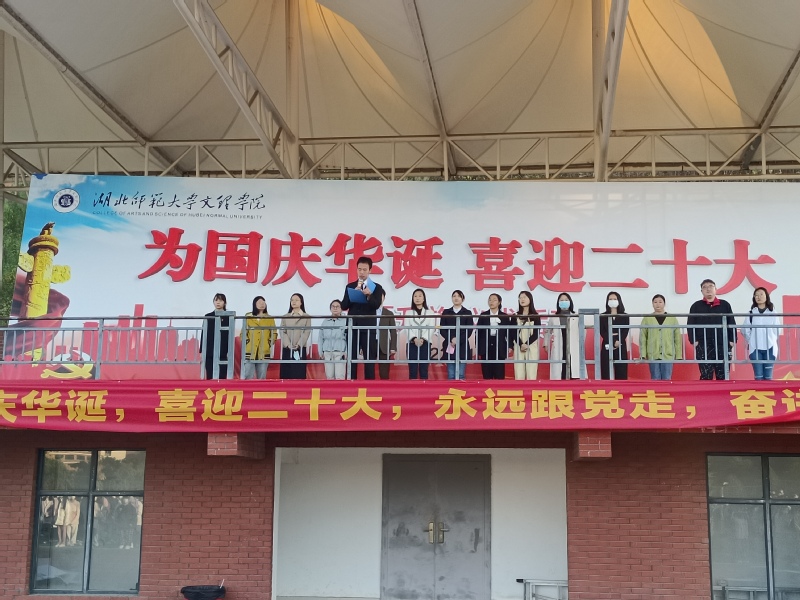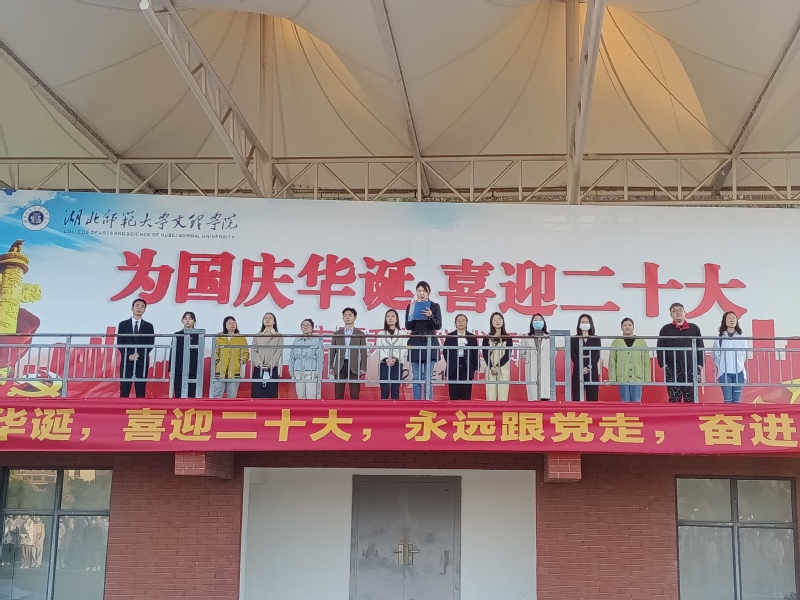云天收夏色,木叶动秋声。为大力弘扬青年学生的爱国主义精神,开云online(中国)人文学部于2022年10月10日早上6点40分在田径操场隆重举行了以“喜迎二十大,骄阳更照国旗红”为主题的升旗仪式。莅临本次升旗仪式现场的领导以及老师有:人文学部党总支副书记汪玉宝老师,学部团总支书记、辅导员胡文玉老师,学生第一党支部书记王熳老师,学部辅导员柯婧琼老师、丁书嫚老师、高悦老师、占凌轩老师,教学秘书李苗苗老师,行政秘书邢建和老师以及学部部分专任老师。