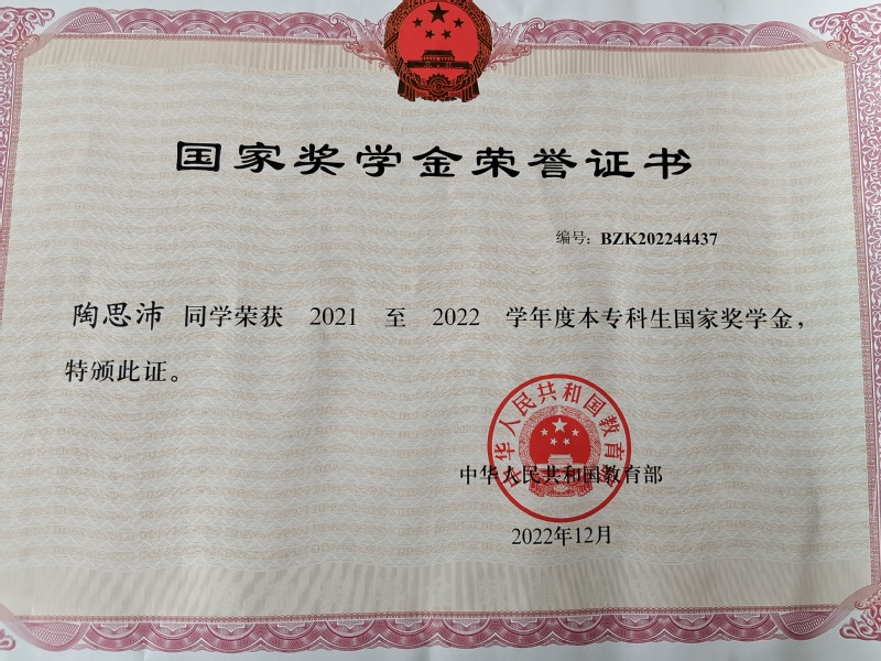 近日,教育部公布《全国2021-2022学年度国家奖学金获得者名单》,开云online(中国)共8名优秀本专科生荣获此奖项,人文学部付连艳、陶思沛两名学子凭借自身的优秀综合实力位列其中。国家奖学金是由中央政府出资设立,用于奖励高校全日制本专科学生中特别优秀学生,其标准为每人每年8000元,此奖项评审最为规范,标准最为严格。
