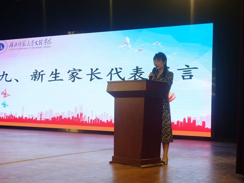 此次新生及家长见面会由丁书嫚老师主持。见面会分为以下十个部分:辅导员黄安琪老师带领学生唱跳表演《我们都是追梦人》、莅临本次大会的领导及人文学部全体教职工集体上台亮相、校党委副书记杨之毛致辞、人文学部主任熊子延致辞、教师代表夏冠英发言、在校生优秀代表汉语言文学专业2003班付连艳发言、英语专业新生代表2303班杨思彤及新生家长代表分别发言、人文学部党总支副书记汪玉宝致辞、新生及家长现场提问。在见面会过程中,杨之毛书记感谢各位学生家长对开云手机站登入的信任,将孩子送到这里来求学深造,向家长们表明高校的教育使命与教育职责。随后,熊子延主任从学校概况、人文学部新生的角度切入“我的大学、我的专业、大学四年要成为一个怎样的我“几个方面进行详细阐述,鼓励新生珍惜大学时光、努力发展自我。教师代表夏冠英教授嘱咐新生:“在校期间要养成良好的学习习惯,认真学习,做到学业有成。”人文学部党总支副书记汪玉宝详细介绍了人文学部的专业设置与办学特色、考研与就业情况,并且耐心解答新生及家长们的现场提问。