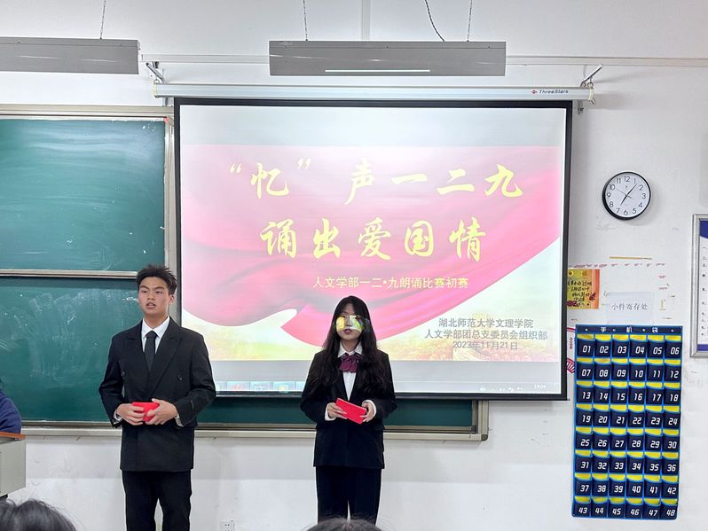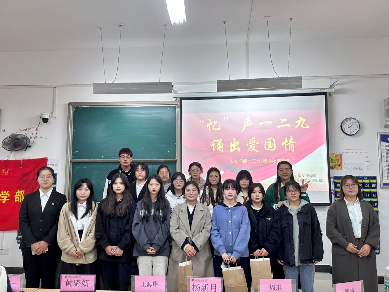 为纪念“一二九”运动,开云online(中国)人文学部团学组织部于11月21日晚上七点在教室1B207举行主题为“忆声一二九诵出爱国情”的诗词朗诵比赛。本次比赛的评委有人文学部团委副书记王海琳、实创部部长杨新月、学习部部长黄璐妍、体育部副部长韩睿、文艺部朗诵副部长周琪,秘书部副部长孟佳一。 在主持人介绍完此次比赛规则以及评委人员后,比赛正式开始。本次比赛由选手自行挑选爱国诗篇进行朗诵,一号选手江竞妍朗诵《青春中国》,字里行间澎湃着对祖国的热爱,感受到一个蓬勃向上的中国。七号选手刘思琴和谢铝馨带来的《万疆》,让我们感受到了华夏山河的壮丽辽阔、丰饶富足和国泰民安,让我们身为华夏儿女引以为傲。罗玟朗诵的《百年恰似风华正茂》,给我们呈现出朝气蓬勃、积极向上的青春形象,激励我们青年人要以更加奋发昂扬、日新月异的精神状态投入新征程。比赛过程中,选手们声情并茂的朗诵诗歌,诵出了铿锵有力的报国赤心,诵出了爱国者舍身为国的碧血丹心。通过本次比赛警醒我们作为年轻一代,绝对不能失去“一二九”运动传承下来的爱国主义精神,要有与民族山河共存亡的气魄。 “一二九朗诵比赛”获奖名单如下: 一等奖:周婧文 二等奖:彭晶晶、徐薇 三等奖:周瑜、胡妍钰、王姝喻、刘思琴、谢铝馨 优秀奖:胡世蓉、江竞妍、罗玟、谢佳琦