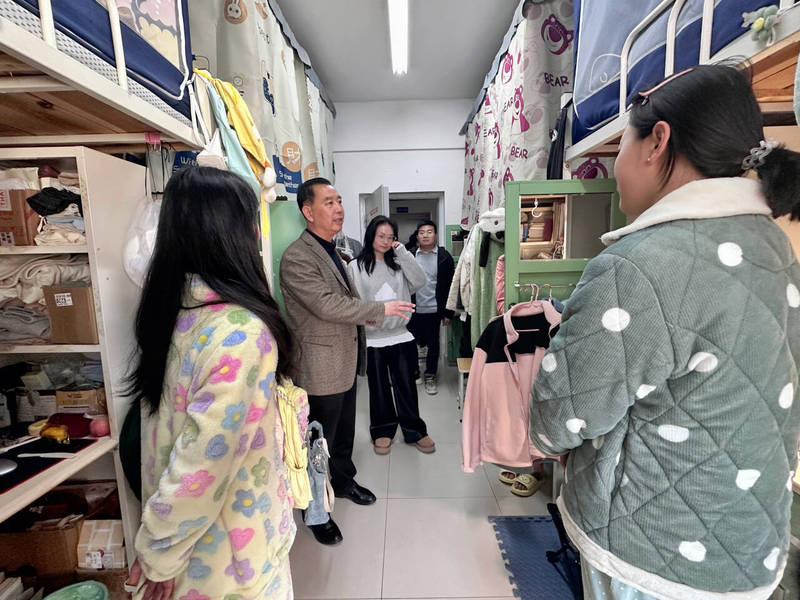 周景斌书记强调宿舍是学生学习、生活的重要场所,也是思想政治教育以及安全管理工作的重要场所。他与同学们进行了亲切的交流,鼓励同学们努力学习,认真大胆考研;加强身体锻炼,注意安全,提高反诈意识,遵守校纪校规;室友之间要团结友爱,互帮互助。