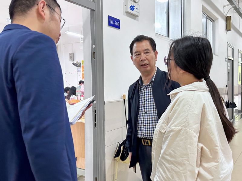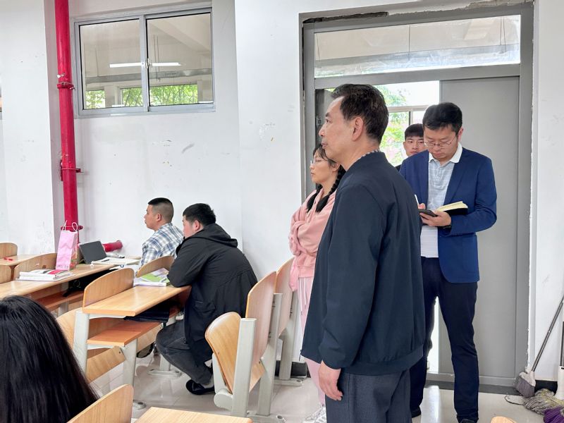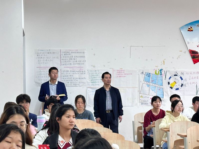 为进一步巩固优质学习环境,营造浓厚学习氛围,人文学部持续加大学风建设力度,开启本周学风督查行行动, 4月17日下午14时,人文学部党总支书记周景斌老师、团总支书记胡文玉老师、学工办副主任郭旭林老师走近学生课堂,督促师生共同遵守课堂纪律。