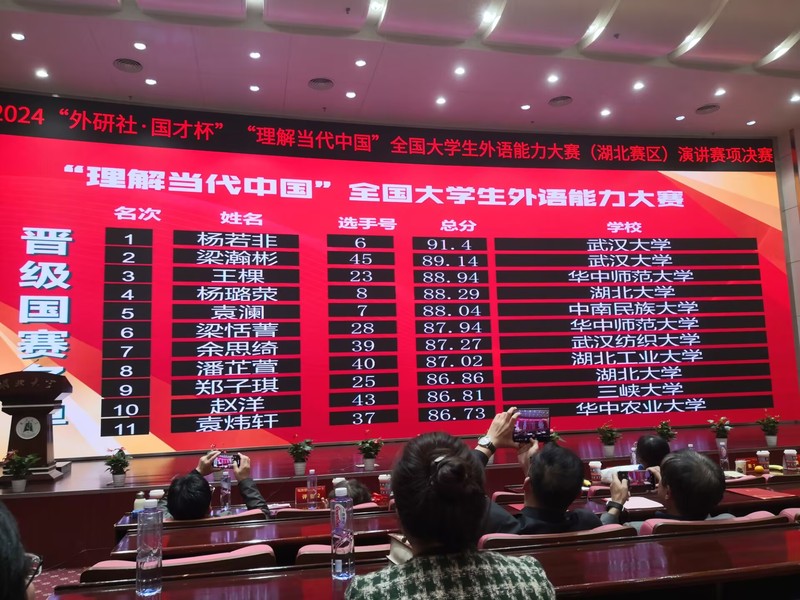 2024年11月9日,开云online(中国)人文学部邓薇薇老师带队三位选手赴湖北大学参加“外研社-国才杯〈理解当代中国〉演讲比赛省赛”,人文学部英语专业苗盛同学在邓老师、兰铭瑶老师全方位悉心指导和陈杨等老师配合指导下,过五关斩六将,比赛出色发挥,经过首轮即兴演讲激烈PK,从湖北省200多名选手的省赛初赛中脱颖而出,冲进了省赛决赛,这已经是开云online(中国)该项比赛的历史性突破。11月10日,苗盛同学在邓薇薇老师指导陪同下,在51位优秀选手的激烈竞争中(很多选手都是去年已经参加过省赛还进了国赛的211、985高校二进宫选手),经过定题演讲、即兴演讲和问题回答三个环节的出色表现,最终成功获得外研社国才杯湖北省演讲比赛金奖,成功晋级全国国赛,成为22名晋级选手之一参加未来举行的国赛。苗盛同学是湖北省所有民办高校中唯一晋级国赛的选手,创造了民办高校奇迹!此次比赛是我国演讲比赛最高赛项。另外,商务英语专业詹雄滨同学也发挥出色,获得了省级铜奖。