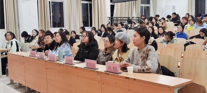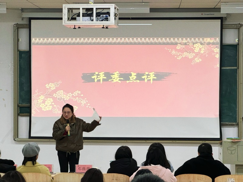 为进一步激发同学们学习语言的热情,提升英语口语表达能力,并增强专业语言应用能力,人文学部团学文艺部于12月9日晚在1B313教室成功举办了“商务英语实践技能大赛”。英语专任教师邓薇薇、张格、邓明慧,教秘老师李苗苗,辅导员老师杨峰、张思思担任本次活动评委。
