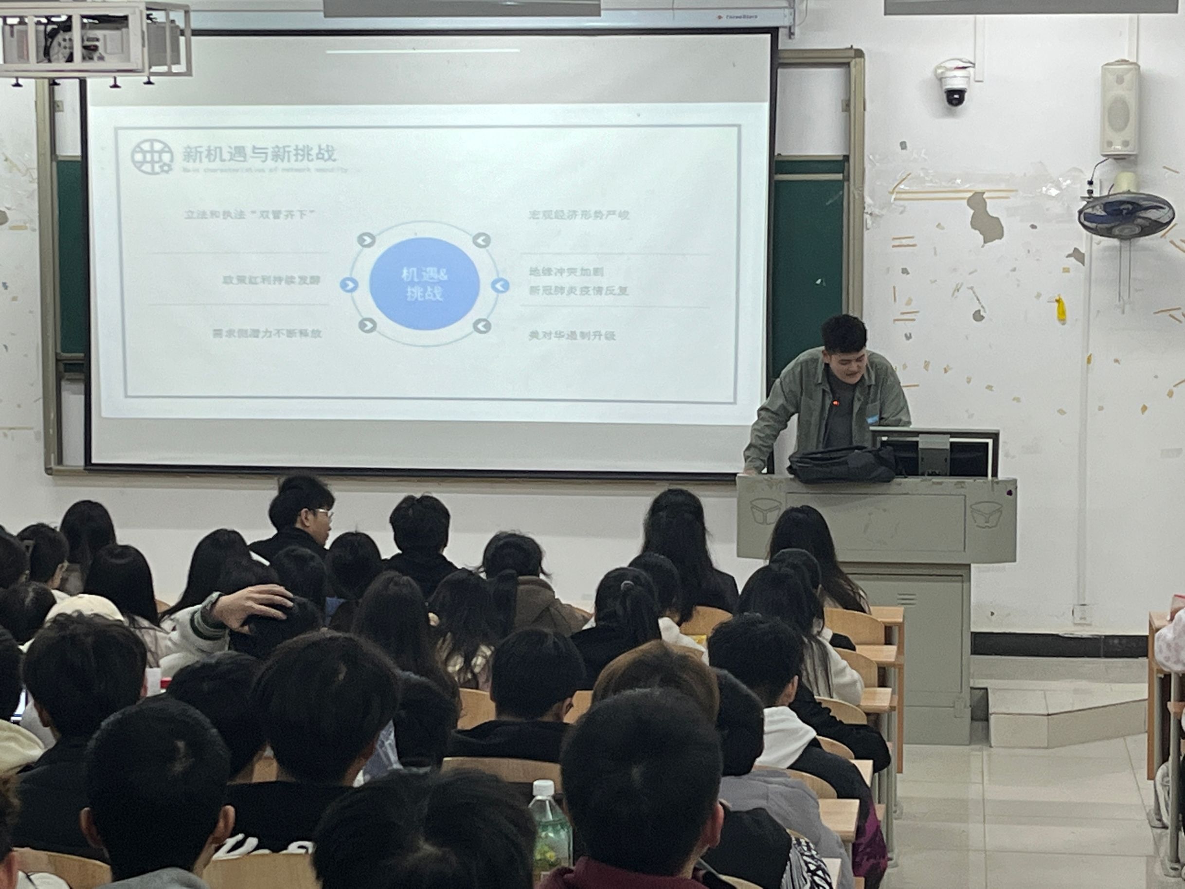 来自天融信网络安全公司的讲师代表对学生们深入普及《中华人民共和国网络法》、《中华人民共和国数据安全法》 等重要法律法规,推广网络安全知识和网络安全技能。代表谈到:“没有网络安全就没有国家安全,没有信息化就没有教育现代化”。他从我国重大数据泄露事件出发,引出我国对网络安全的重视程度和网络安全发展就业前景,也提醒着同学们网络安全的重要性,并鼓励大家踊跃参与各种大型网络安全维护的技术竞赛,从竞赛中汲取更多的网络安全知识。
