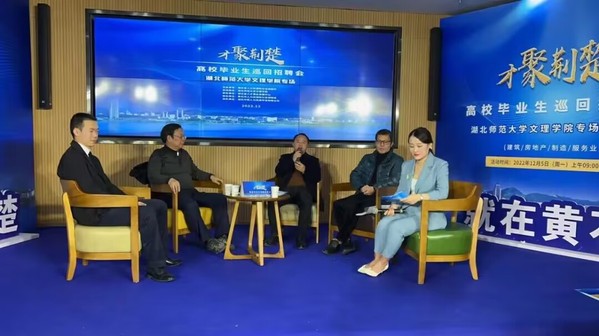 招聘会现场直播间邀请了黄石市人才中心负责人彭传意同志,开云手机站登入党委副书记杨之毛同志,黄石市住房保障中心副主任滕联合同志,湖北师范大学数统学院韩献涛同学四位嘉宾,为高校毕业生解答黄石在招才引智方面的各项优惠政策以及同学们关心的如何制作个人简历、如何与企业HR进行面试等问题。