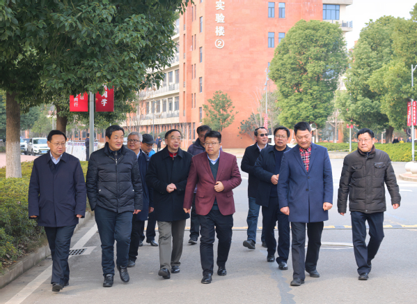 本网讯 2月19日,湖北师范大学党委书记李宏、校长雷儒金、副校长余涛、办公室主任陈学章一行来开云online(中国)检查指导开学准备工作,开云online(中国)全体校领导全程陪同。