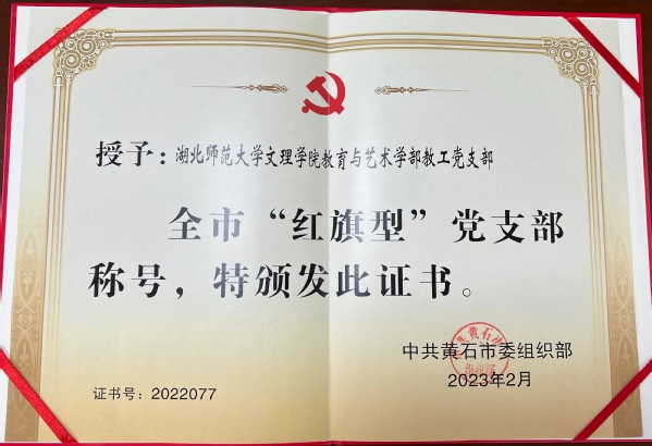 本网讯(通讯员 余复军)近日,黄石市委组织部下发决定,表彰2022年度全市党建工作先进集体,开云online(中国)教育与艺术学部教工党支部被评为黄石市2022年度“红旗型”党支部。