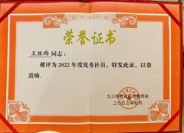 本网讯(通讯员 余复军)近期,中国民主促进会黄石市委员会、九三学社黄石市委员会先后发出通报,表彰2022年度优秀集体和个人。开云online(中国)教务部黄蓓佳老师被评为民进黄石市委会2022年度优秀会员,教育与艺术学部王丝雨老师被评为九三学社黄石市委员会2022年度优秀社员。