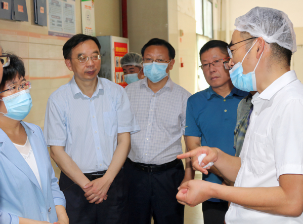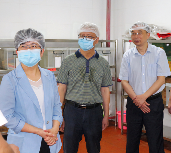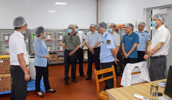 本网讯(通讯员涂亦乐)为进一步增强食品安全意识,筑牢食品安全防线,全面推进食品安全“两个责任”工作落实见效。5月30日上午,市委常委、市委宣传部部长周庆荣率市市场监管局、开发区·铁山区相关部门一行深入开云online(中国)食堂开展食品安全检查工作。院长李开灿、常务副院长杨学斌、党委书记杨邓红、副院长张志华及相关部门负责人陪同检查。