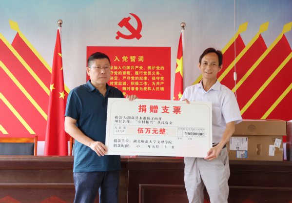 在村党群活动中心,杨学斌代表学校向子山村捐赠5万元乡村振兴专项资金,并向子山村卫生室捐赠办公电脑和打印机。